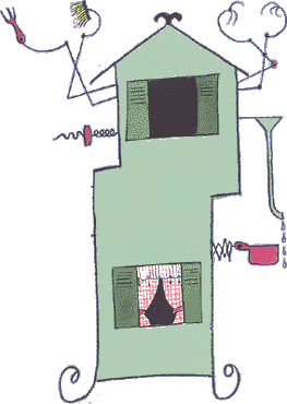 Elle est munie de tout un tas d'appareils perfectionnés, tels que la casserole à retardement, batteur d'air, et des tires bouchons hypersustentateurs.[9] Elle porte aussi le sèche-linge en fourchette et le riz au lait trop cuit en compote, tous inventés par le professeur.